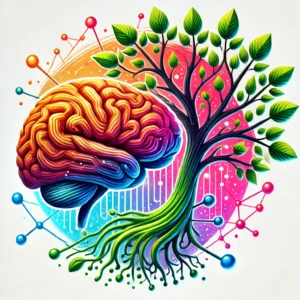DALL·E 2025-01-30 12.26.48 – A vibrant logo featuring a fusion of a brain, a mycelium network, and a tree. The tree grows naturally out of the brain, with realistic branches and l